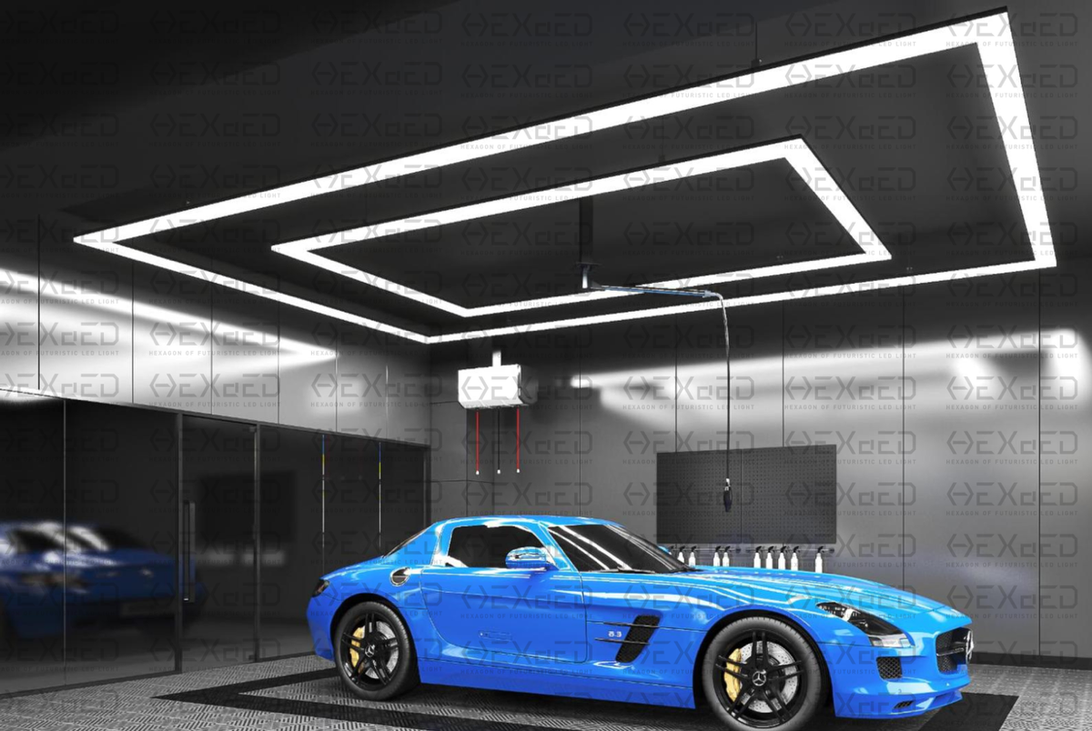 本製品は、建築照明としてのデザイン性と作業照明としての視認性を融合した新しい照明ソリューションです。フレーム構造による均一なライン光が影を抑え、ボディラインや塗装状態を正確に可視化するとともに、空間全体に洗練された印象を与えます。