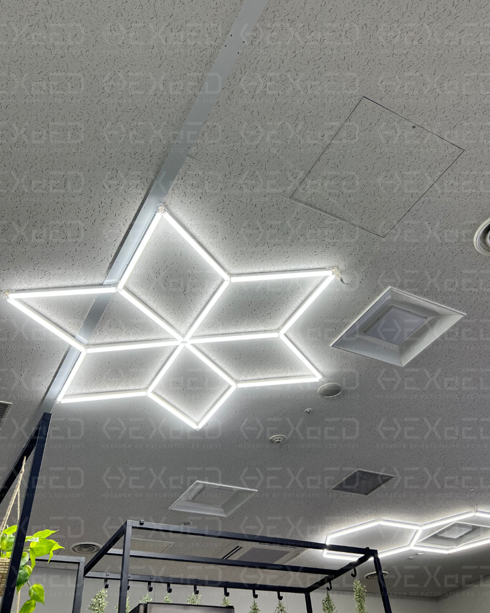 HEXaEDは六角形(ハニカム)構造をベースとしたLED照明で、モジュールを組み合わせることで自由度の高いレイアウトを実現できることが特長です。